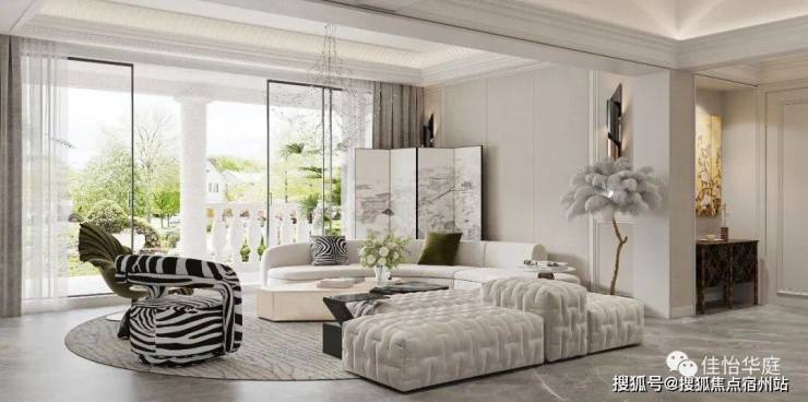 小区建筑设计以简欧风格为主,外墙干挂大理石,整体是浅米黄色调。四周采用铝合金断桥双层中空玻璃采光窗装饰和庄重石柱,为别墅的豪气程度增添色彩。样板房室内装修为轻奢和简欧混搭风格,自带高级感的设计元素彰显了住户的气质。
