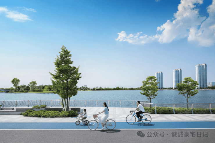 闲暇时分,下楼就能来一场环湖4km亲子骑行,一路上湖光天色尽收眼底。