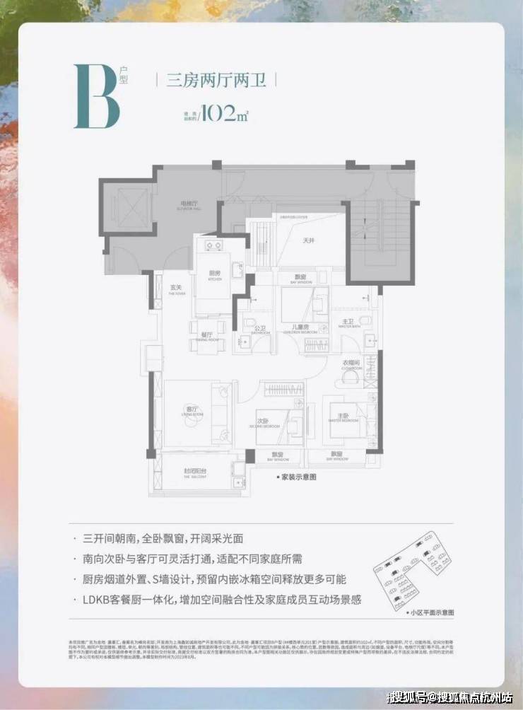 建面约102平3房2厅2卫(边户)