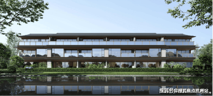 宋式三段式立面搭配古铜铝板,深檐挑角与东西向宋风窗扇呼应,让建筑自带“轻盈温润”的宋画意境。