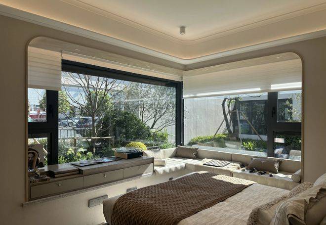 如果是边套的主卧,还会有一个约270°的转角飘窗,尺度感和实用性更上一层楼。