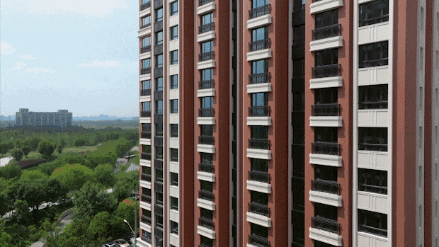 项目外立面采用红色面砖加底部葡萄牙沉香米黄石材,精致典雅且耐看,相信就算经过时间的洗礼也会经久不衰。