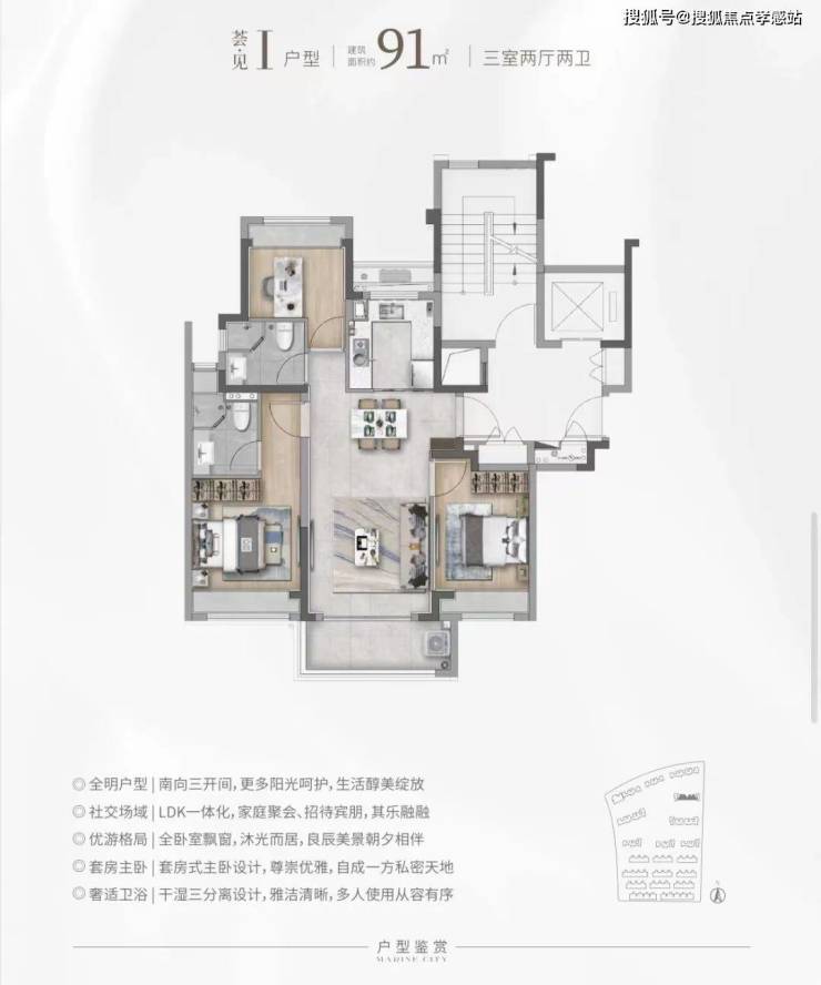 建面约101㎡3房2卫&