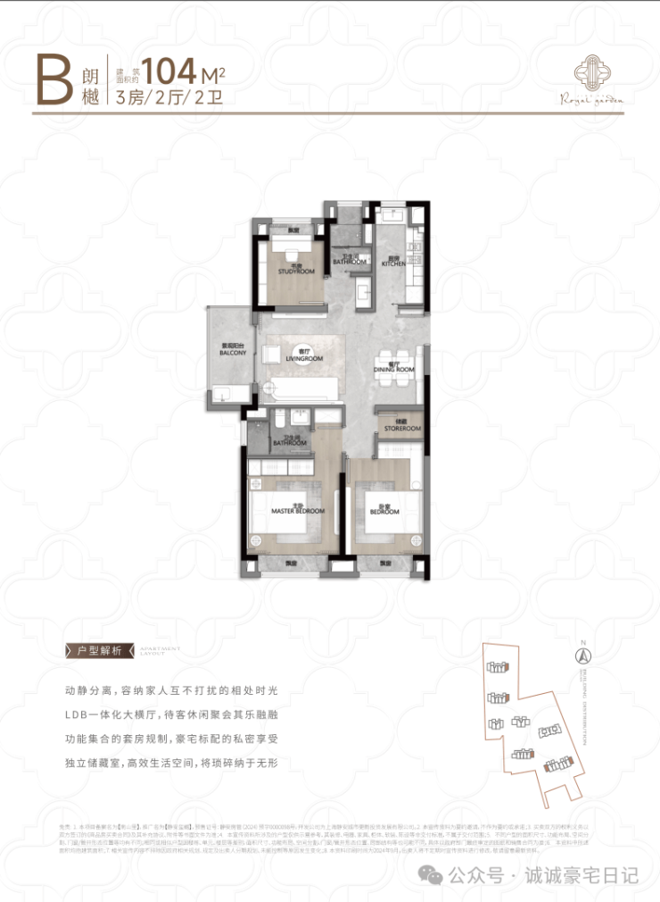 项目预计加推的三期房源,主要包括建面约98-107㎡2-3房。看点有三: