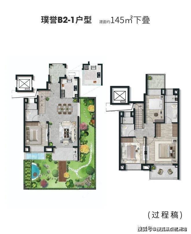 叠加别墅面积123至145平方米,联排别墅为182至202平方米,激发更多生活灵感。下层地下室可改造成家庭影院、收藏室或工作空间;星空露台在夏夜适合观星和与朋友聚会。上层坡屋面阁楼,可成为孩子的梦幻乐园,或作为主人的安静书房。