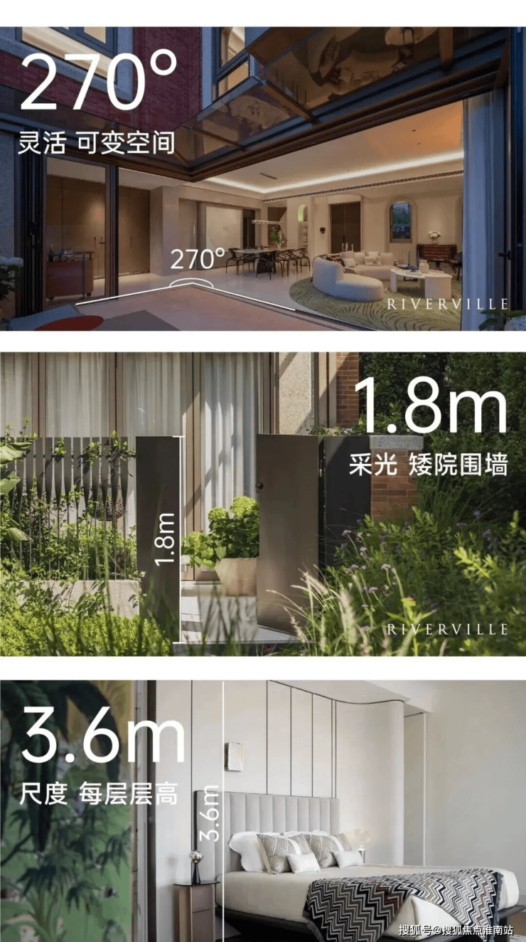 「开阔尺度」:约3.6米层高、超大窗墙比等花园里弄的尺度突破,尽显居者风度。
