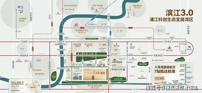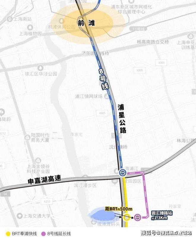 项目距离浦江线汇臻路站约1.3KM,5站即达沈杜公路站并与8号线换乘,可一线直达前滩。或通过BRT快线可一站无缝对接8号线沈杜公路!