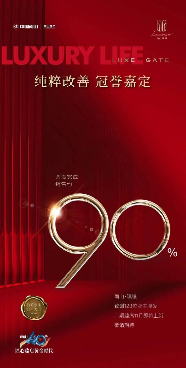 去年10月26日,南山·璞缦在万众瞩目中迎来盛大首开,人气火热,盛况空前,登场即热销!项目首推房源136套,开盘当日去化123套,去化率约90%!