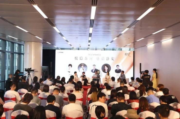 开放仪式的圆满绽放后,媒体品鉴沙龙以“悦隐苏河 盛启静安”为主题展开,由地产天下主播梁霄先生主持,项目特别邀请了上海大宁资产经营(集团)有限公司党委副书记、总经理于旭东先生,上海天华副总建筑师李黎女士,地产申度创始人梁文汇女士,第一地产制片人严东彦女士一同围绕静安苏河湾板块价值、人居规划设计等议题展开深度探讨。