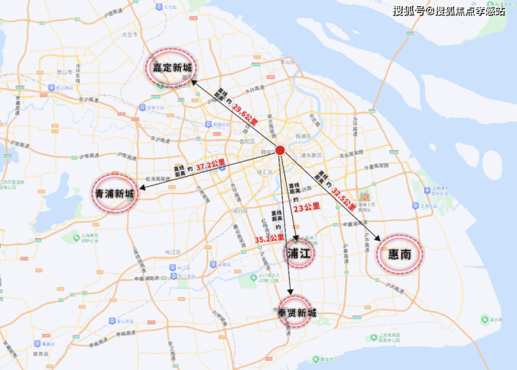首先是位置,位处闵行浦江板块三水交汇之地,距离人民广场直线约23km,7站前滩,闵行浦东两大强区势能轻松独占,与五大新城相比,距离市中心更近,但是联动价约4.3万/㎡,这样的性价比肉眼可见!