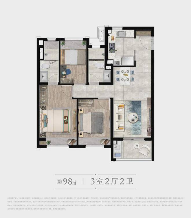 [ A户型 ] 建筑面积约98㎡ | 3房2厅2卫