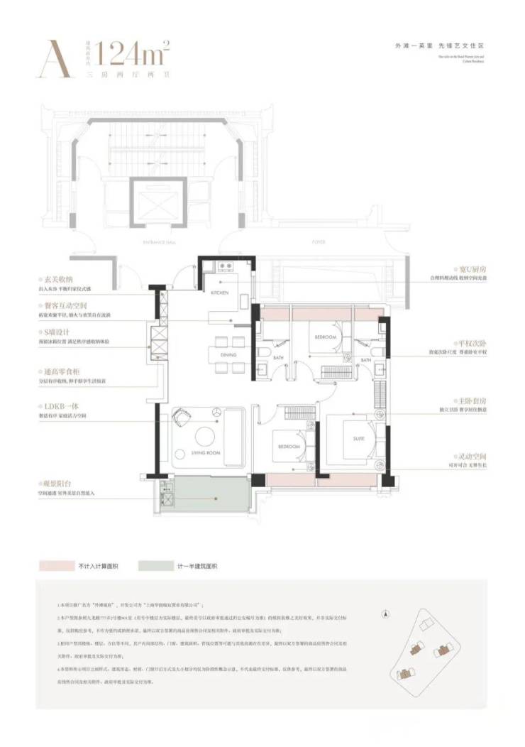 亮点:一梯一户、层高 3.15 米、LDKB 一体化、中西双厨、主卧总统套房