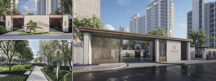 单元门头引入现代审美观念,整体两层通高,以绚丽的金属铝板搭配精致的装饰纹理格栅打造,呈现出高级的品质感,营造出充满仪式感的归家氛围。并且引入业主人脸识别、多种复合刷卡、呼叫方式出入,访客可通过门口机呼叫业主室内机授权入楼,主客进出更方便、更安全。