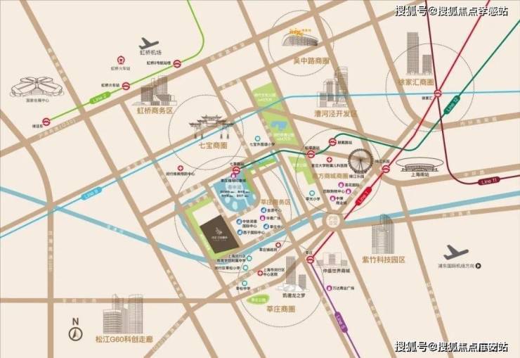 轨道交通方面:项目距离12号线七莘路站步行约1200米,进站直达南京西路,未来七莘路站还明确了继续向西延伸的建设方向。自驾方面,由于地处外环高架和嘉闵高架之间,坐拥七莘路和顾戴路两条快速路也使得开车出行也十分方便,