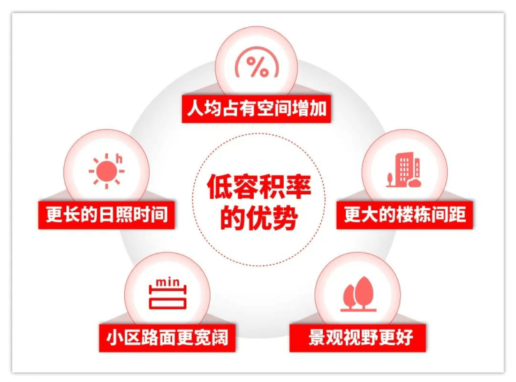 除了产品类型不同之外,低密住宅在楼间距、景观、日照时长等各个方面都有着很大的提升。
