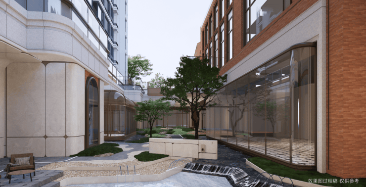 项目独创"归家五境、九剧场、十二街巷"景观序列,以"引画入园"为设计理念,打造树院、水院、后院三重意境空间。