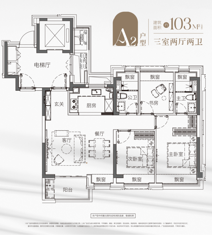 这套 建面约103㎡动静分离户型打破常规, 兼具三个房间和南向超阔面宽的横厅,以此承载从二人世界到三代同堂的全生命周期需求。
