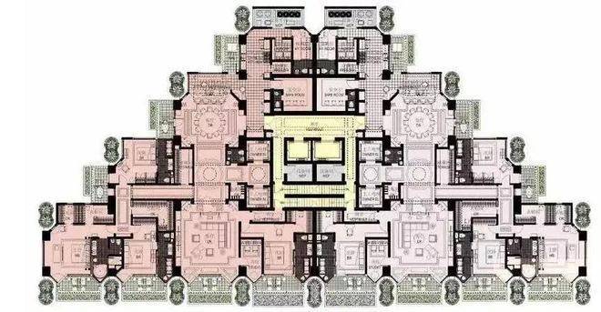 结构:每户采用同层排水和核心筒设计,可根据居住需求设计改动,开发商提供7个装修设计团队供挑选,每户拥有保险屋(可设计成收藏室,安全性高,可防弹)
