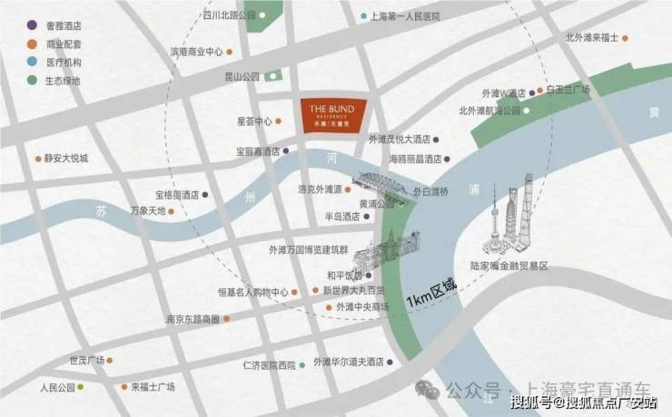 现有:商业配套:坐拥全上海市蕞优渥的滨水资源及蕞顶级商圈,步行5minutes可抵外滩万国建筑群、步行10minutes左右到达白玉兰广场、新世界大丸百货、恒基名人购物中心、南京东路商圈等,驾车1.5km可到北外滩核心中央活动区、车行1.7km可到达陆家嘴CBD国金中心、约4km内可到达老码头BFC商圈、城隍庙、新天地商圈、淮海中路等商圈。