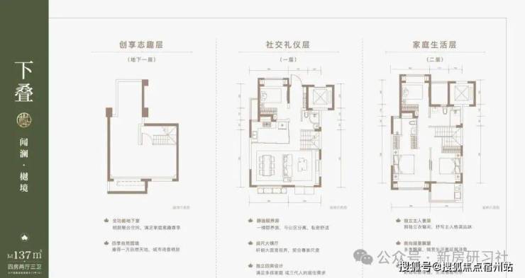 建面约137㎡下叠,四房两厅三卫全能格局,非常适合二娃家庭以及三代同堂。