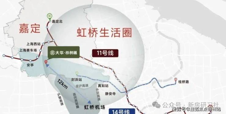 「大华梧桐樾|越界」,位于嘉定的核芯区位,与虹桥主城区核心距离也只有5km!