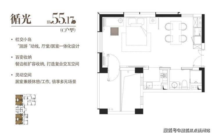 C|循光|建面约55.17 m²|一室一厅一厨一卫