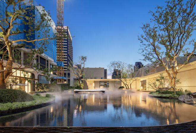 九艺落位,门前皆景:从入口的石艺,到最后一个庭院的泉艺,中建玖上琅宸每一栋楼的门前,都有对应定制的设计主题。