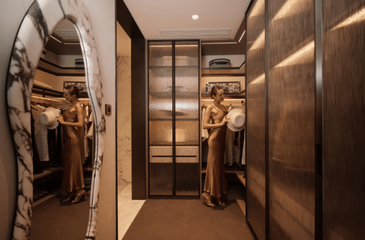 主卧大套房设计带超大主卫和衣帽间 ,面积约50㎡ ,尺度感与市面上近300㎡的顶豪拉平。