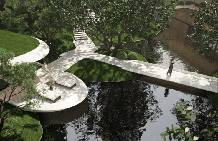 立体庄园景观:项目打造约3万方全地貌园林,约110米超长绿荫串联派对草坪、雅憩花园、方舟秘境等场景,形成层层递进的立体景观,实现了从“造园”到“造生态”的行业升级。