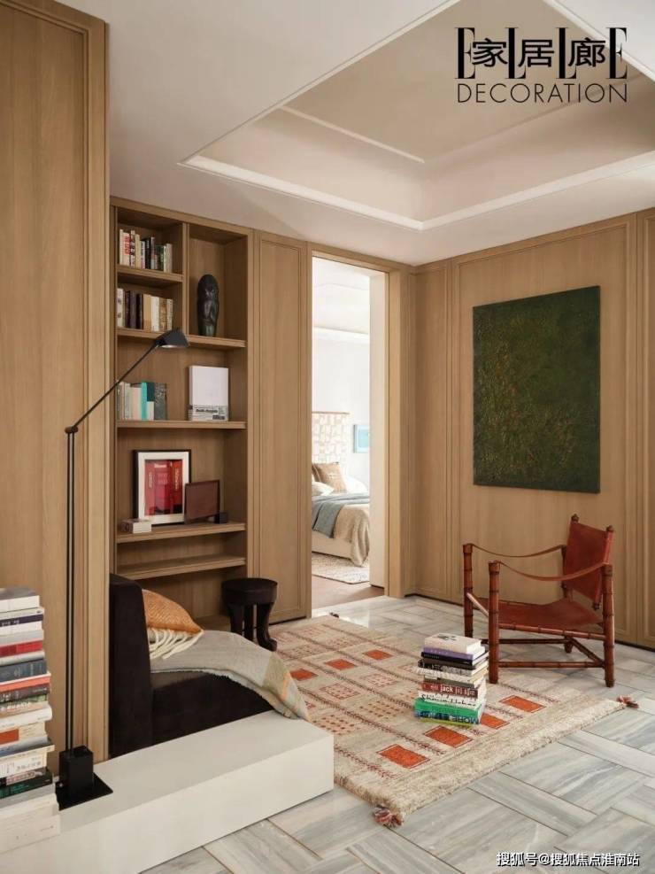 因此,设计摒弃花哨的视觉语言,回归到“感受”本身。“作为最接贴近自己的空间,卧室里你最在意的是什么?”,这个答案落在了“环保”与“亲肤”上。设计师选择羊毛、棉麻等作为卧室空间的体感材料。而不管是从欧洲特别定制的毛毯到床头软包面料都经历了一系列苛刻的筛选,以达到人们心目中理想的使用体验。