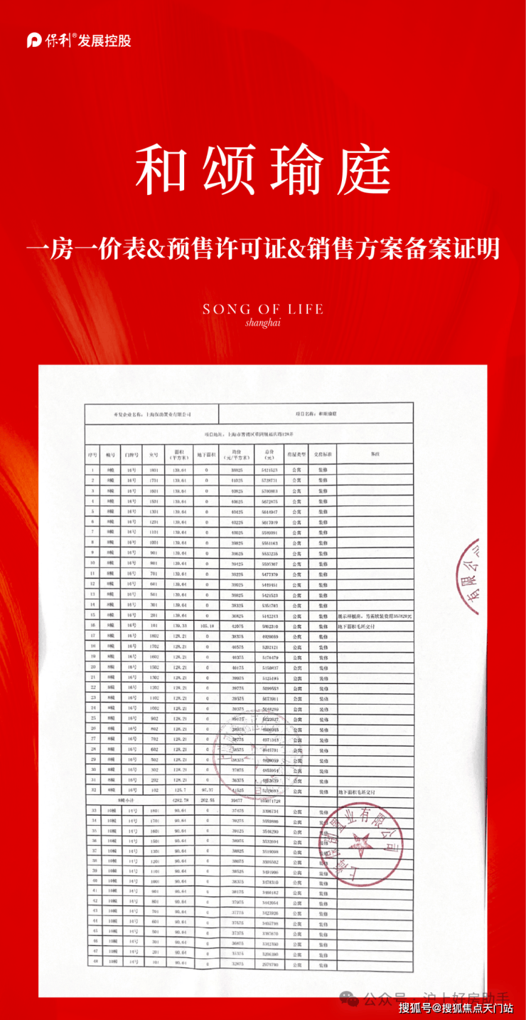 保利虹桥和颂一房一价表▼