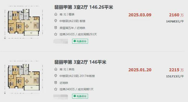 杨浦滨江的标杆项目翡丽甲第就在地块西侧400米的距离,目前该小区挂牌均价15.28万/㎡,近期2套成交单价在14-15万/㎡左右,价格还是相对坚挺的。