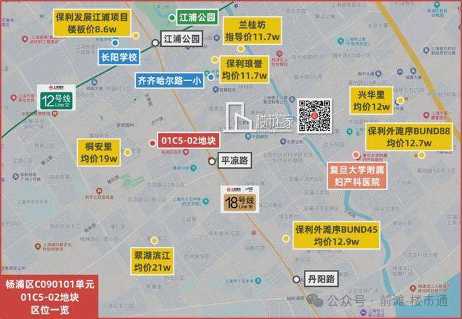 地块位置非常好,直线距离滨江带约1.2km,杨浦区政府斜对面,步行到18号线平凉路站不到400米。