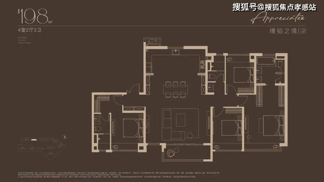 建面约198㎡4房户型,嘉定“收藏级”传世大宅!塔尖人士的挚爱之选!2梯2户的设计,子母双开门礼序入户,私密尊崇门厅,彰显尊崇生活仪式感。