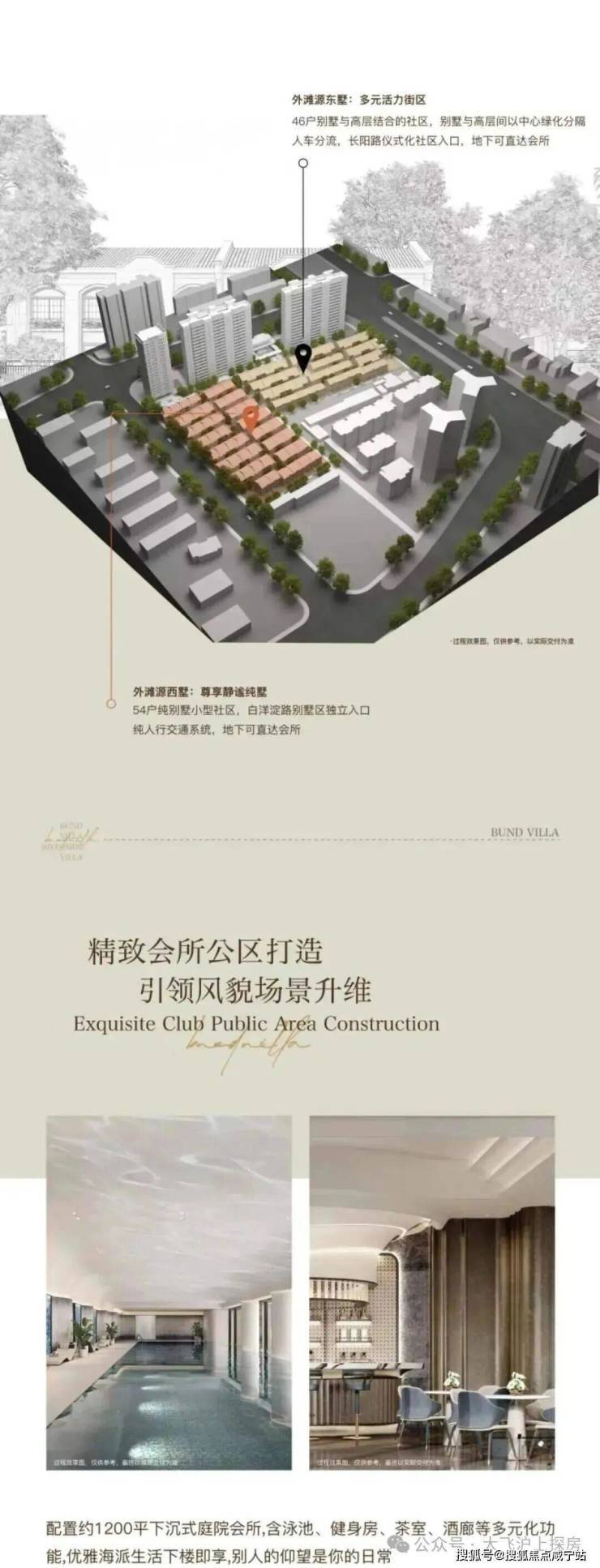 逼格媲美顶豪产品!项目利用下沉式景观庭院,结合艺术花园、摩登水景等,打造了一座高端的下沉式会所,规划设有泳池、健身房、行政酒廊等场景!