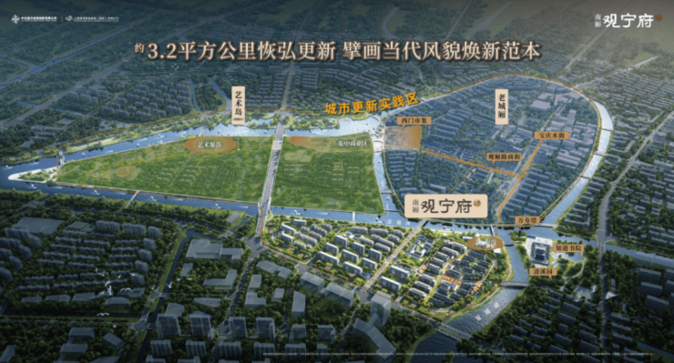 具体而言,南厢观宁府坐落于“老城厢-南厢-艺术岛”三角联动的重要位置,通过规划新建步行桥、景观连廊与慢行系统等,融汇环城水系公园、宝庆水街、青溪园等生态与文化资源,从而融入以南北向的“历史轴”和东西向的“功能轴”所构成的“T字轴线”!