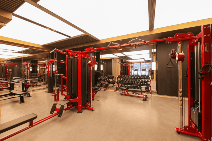 健身空间内,由国际一线品牌JW SPORT定制的法拉利红专业器械,在沉稳的基调中注入一抹克制的力量感。