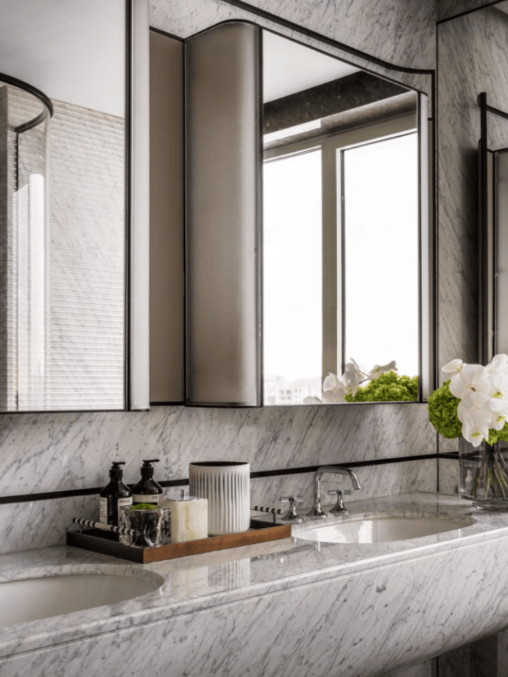 双台盆豪华主卫,带大尺度淋浴空间,同样采用了弧形设计: