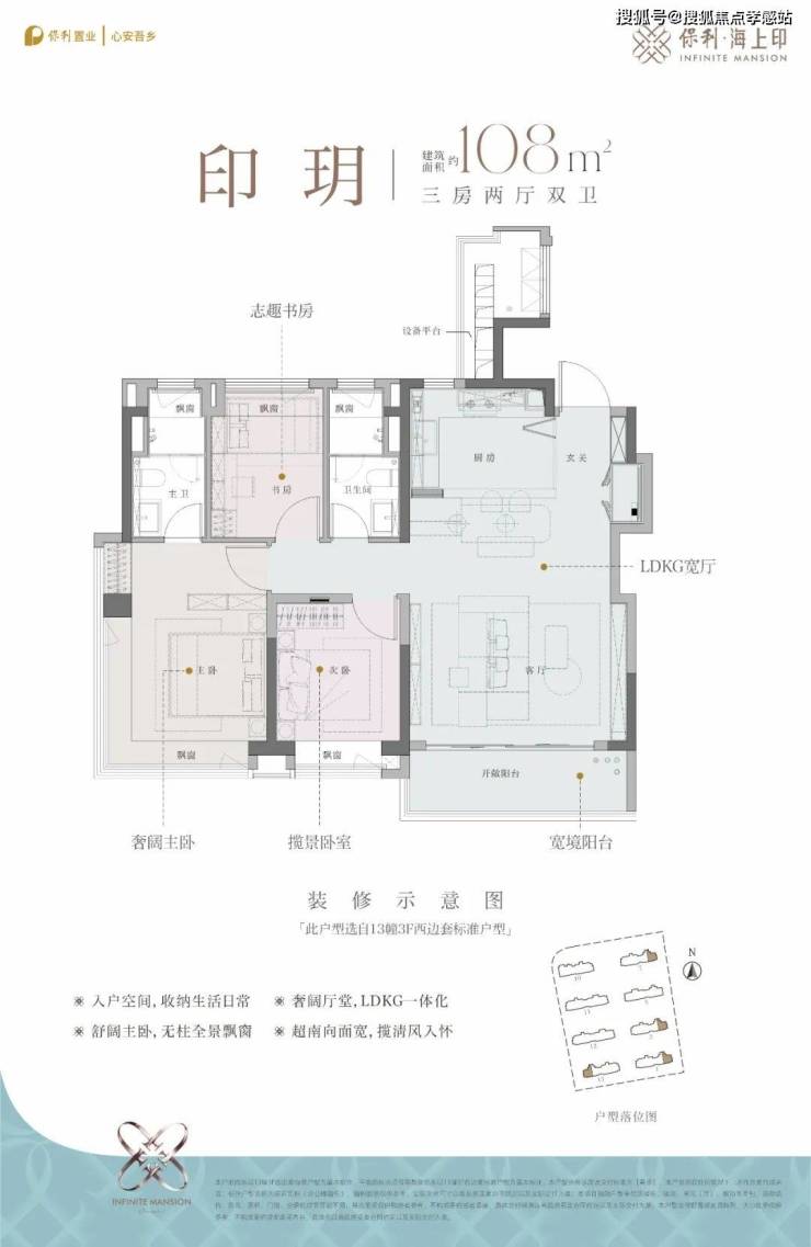 💖 保利·海上印ʚɞ官方售楼处热线:400-9966-940⚡ ꦿ℘建面约108㎡3房2厅2卫,该户型为经典的动静分离户型,三开间朝南,预留分户S墙设计,客厅面宽约4.85米,边套户型主卧为270°转角飘窗。💖 保利·海上印ʚɞ官方售楼处热线:400-9966-940⚡ ꦿ℘