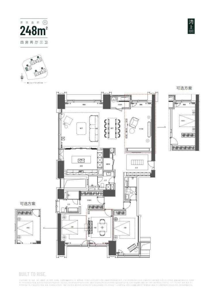三期压轴推出的建面约248㎡4房2厅3卫更是别出心裁!是今年上海豪宅市场首次出现的定制户型,龙盛为业主定制了2+1+1房,3+1房,及纯4房三种自由交付选择,满足了现代家庭多元化的居住需求。