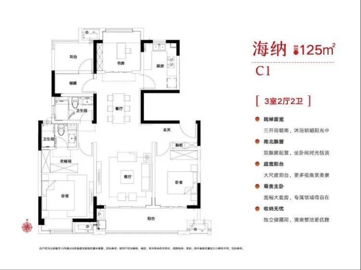 建面125㎡3+1室两厅两卫,总价约为230万左右