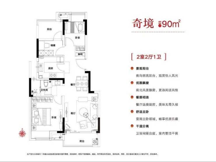 建面90㎡2+1室两厅一卫,总价约为160万左右↓↓↓