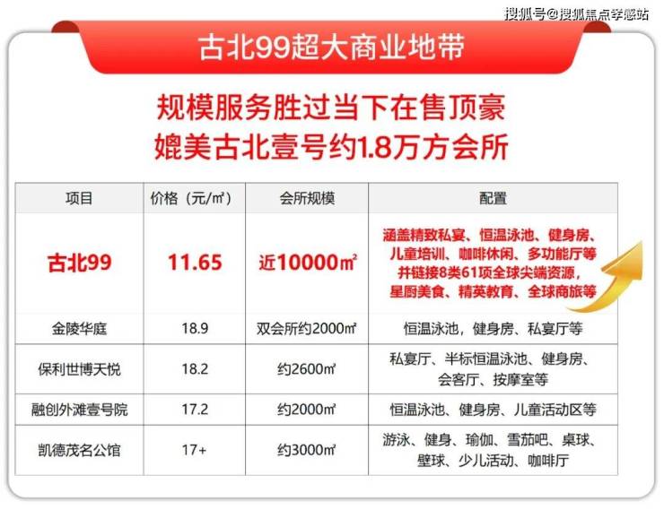 ✔顶豪圈层体验。超大商业地带,搭配缦合物业服务,规模与服务直追古北壹号1.8万方会所,甚至超越当下在售的顶豪项目,在这里,不仅是安家,更是身份与品位的象征。