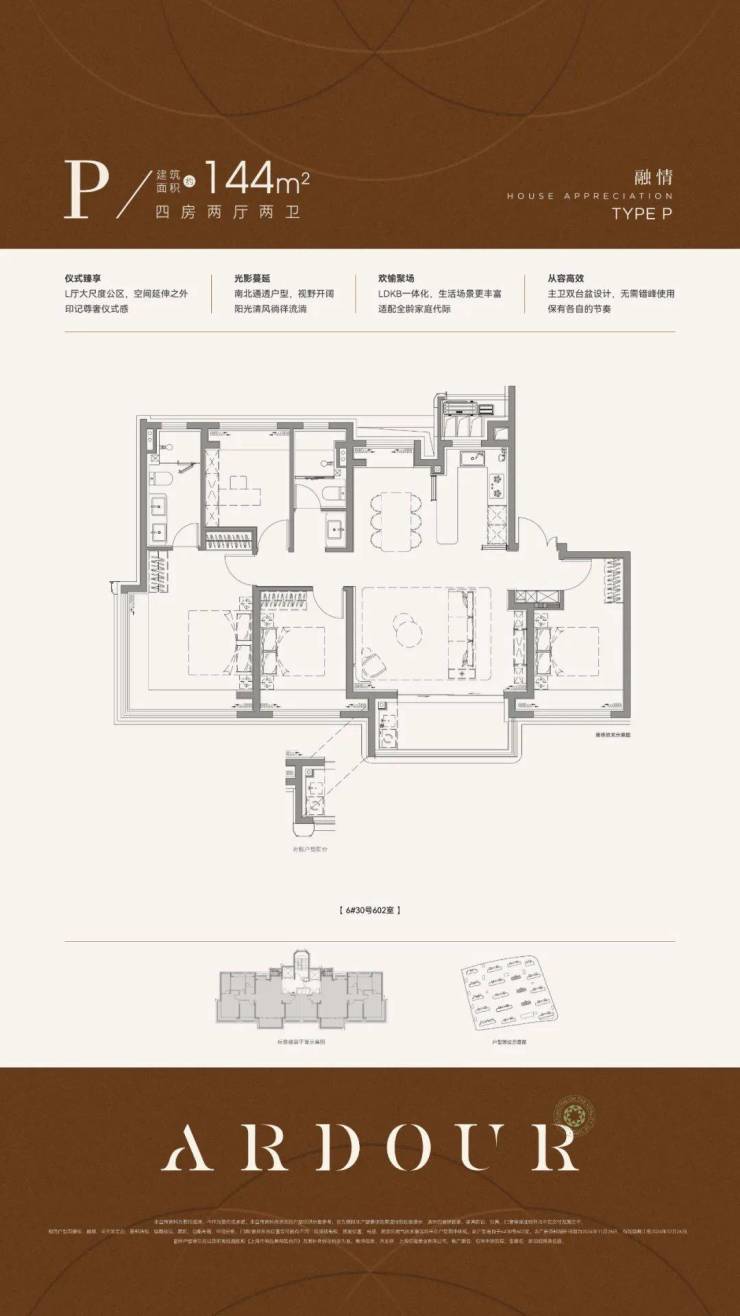 再来看下建面约144㎡4房,部分装标是有所升级的。