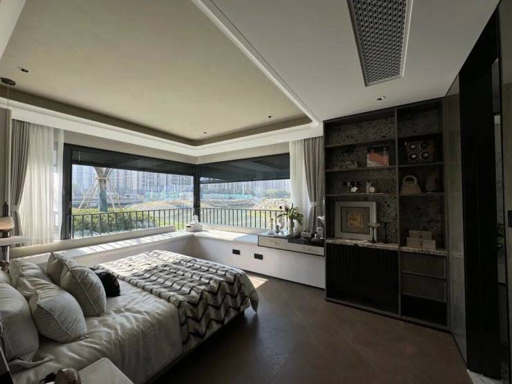 样板间3房做的是边套,今年非常流行的L型转角大飘窗也安排上了,采光视野更佳。