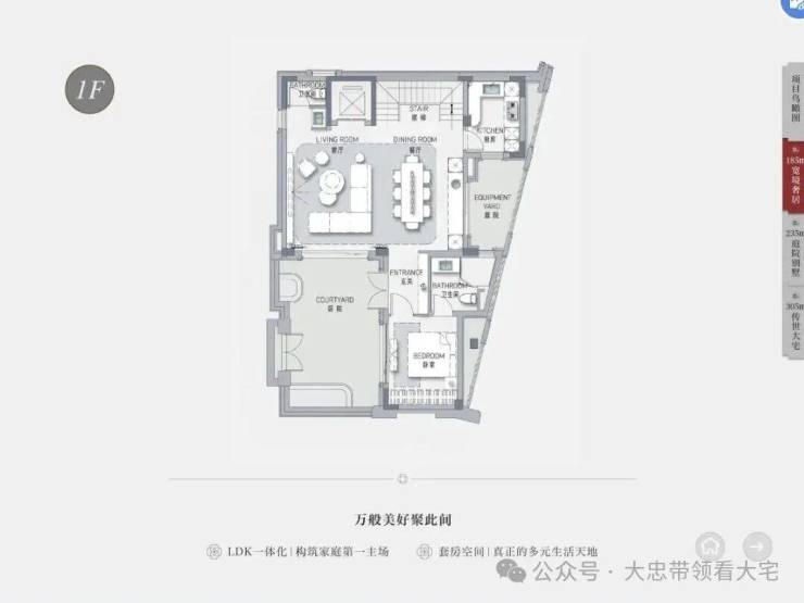 建面约305㎡联排,赠送地下室约185㎡,赠送花园、露台、阁楼,总价约4800W起