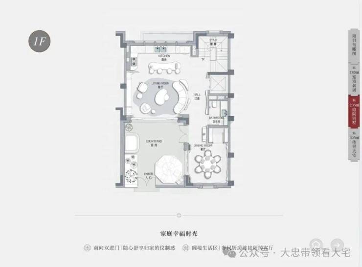 建面约235㎡联排,赠送地下室约130-140㎡,赠送花园、露台、阁楼,总价约3600W起
