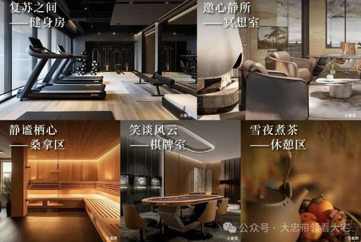 会所内则涵盖健身房+冥想空间+桑拿区+棋牌室等功能。为业主的社交提供场所,为业主的日常休闲提供服务!