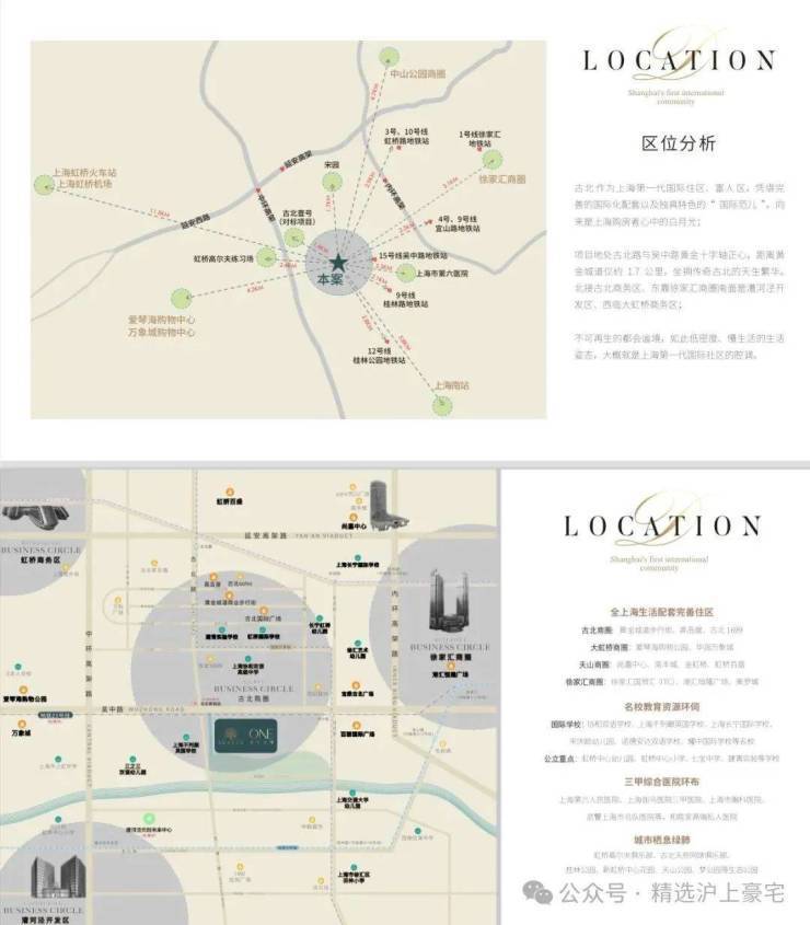 古北壹号公馆地处闵行长宁交界的古北板块,项目依托虹桥交通枢纽和长宁徐汇商圈,交通便利配套成熟,是上海高标准的豪宅社区。