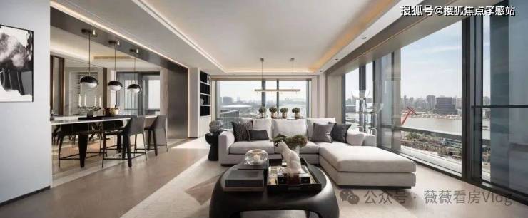 ·建面约240㎡边套,采用L型转角落地窗,打造了270°环幕瞰江视野,无论身处客厅、餐厅,都能以不同角度眺望黄浦江的波光粼粼